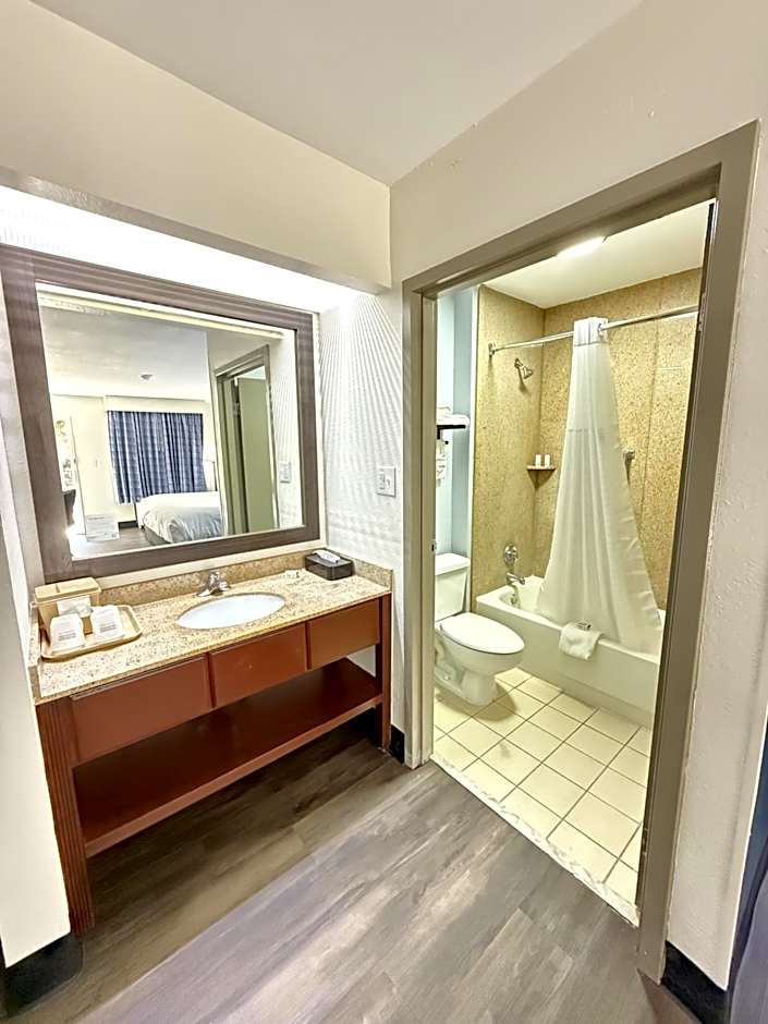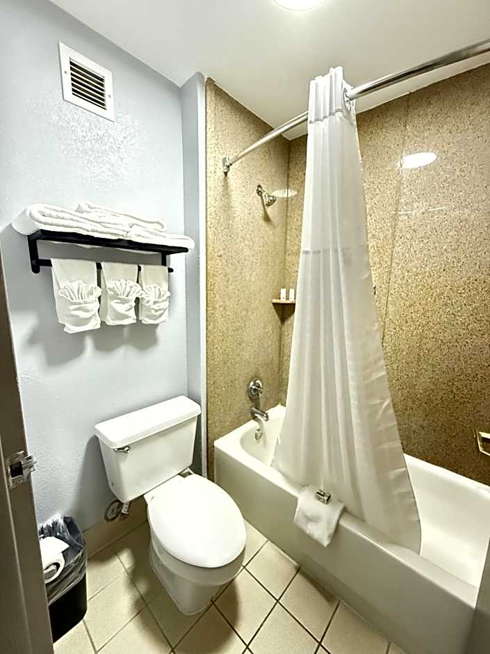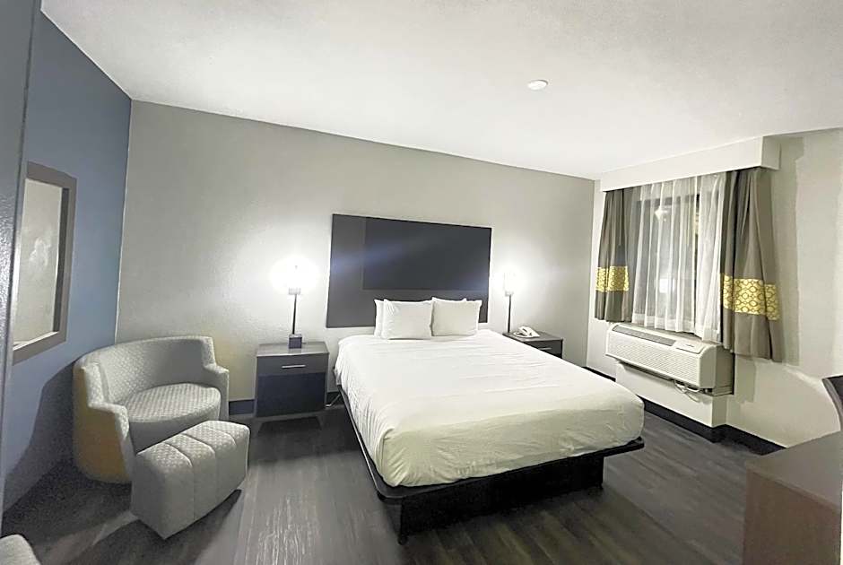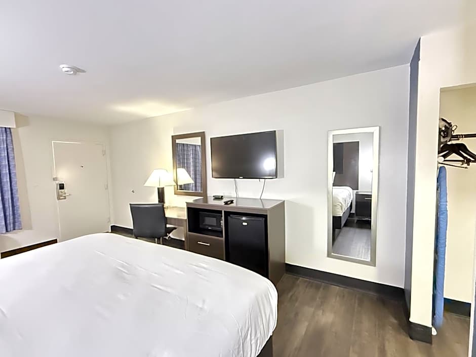 This room features cable TV, a small refrigerator, and tea and coffee-making facilities. A seating are is also provided.